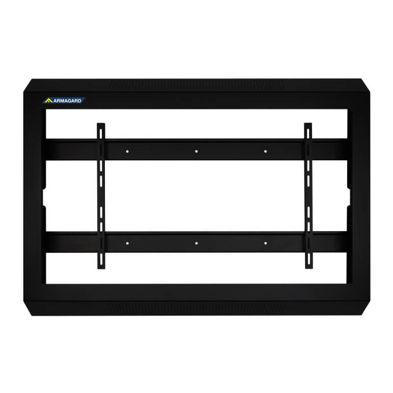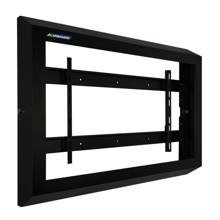 La protección de pantalla TV para entornos sensibles permite la instalación de cualquier pantalla comercial con montaje VESA. El sistema consta de dos componentes principales: la pantalla se fija primero a un soporte interno montado en la pared y, a continuación, la carcasa protectora del televisor se coloca sobre la pantalla y se bloquea en su posición mediante tornillos enrasados y dos cerraduras accionadas con llave.